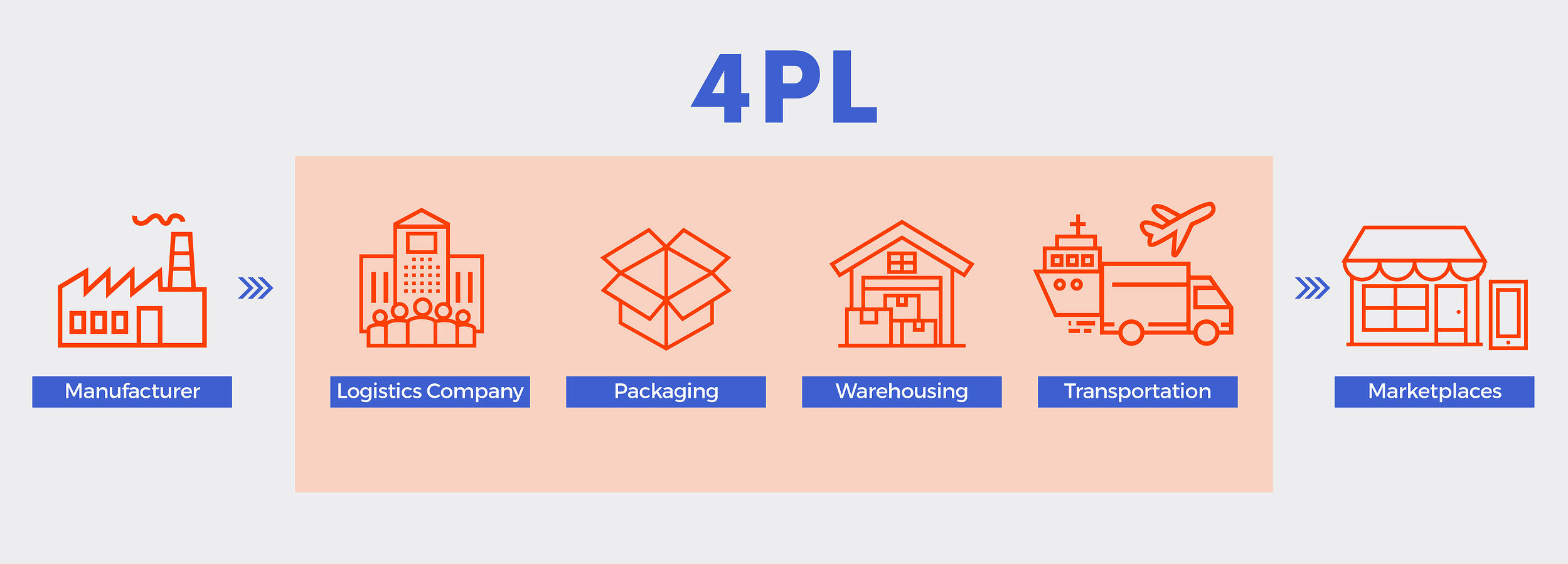 4PL có liên quan với 3PL và được phát triển trên nền tảng của 3PL nhưng bao gồm lĩnh vực hoạt động rộng hơn, gồm cả các hoạt động của 3PL, các dịch vụ công nghệ thông tin, và quản lý các tiến trình kinh doanh. 4PL được coi như một điểm liên lạc duy nhất, là nơi thực hiện việc quản lý, tổng hợp tất cả các nguồn lực và giám sát các chức năng 3PL trong suốt chuỗi phân phối nhằm vươn tới thị trường toàn cầu, lợi thế chiến lược và các mối quan hệ lâu bền.