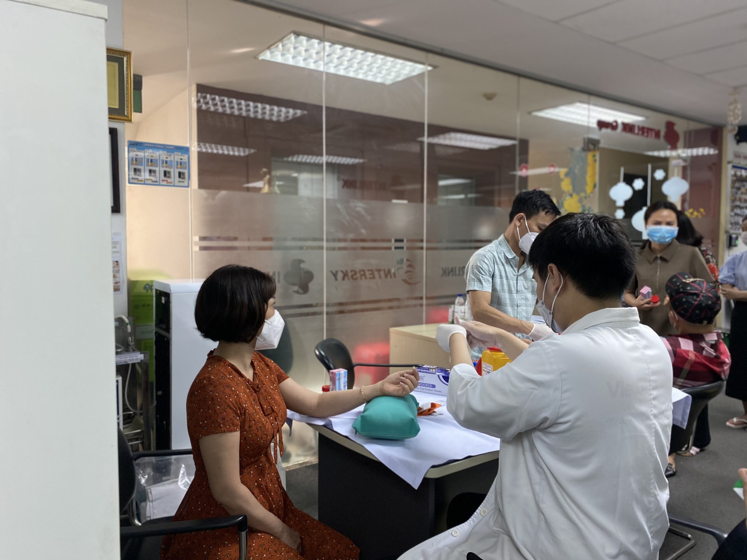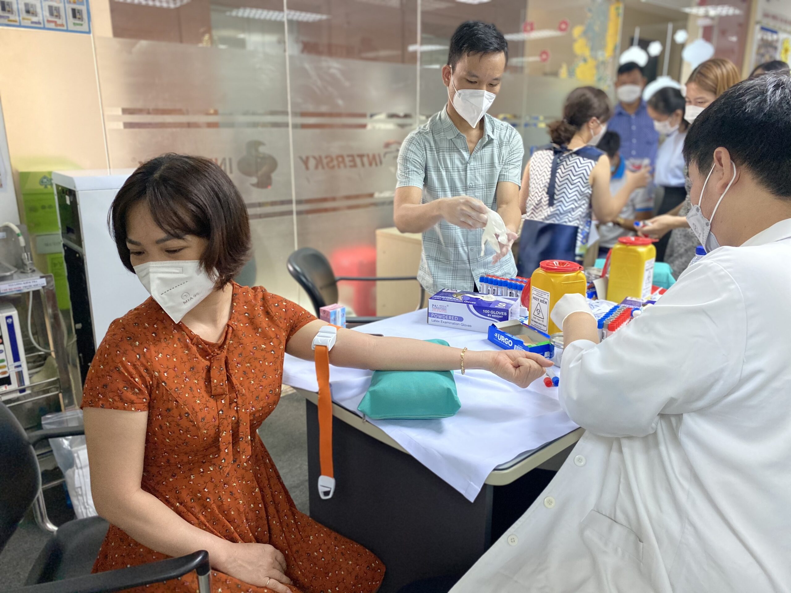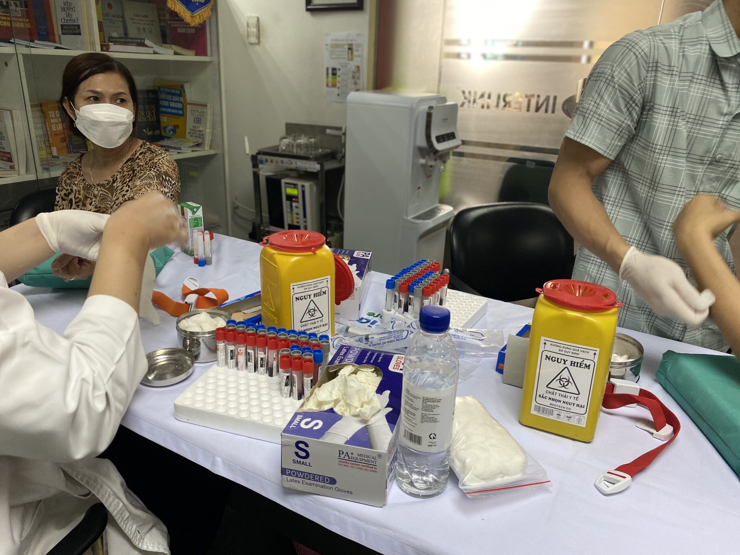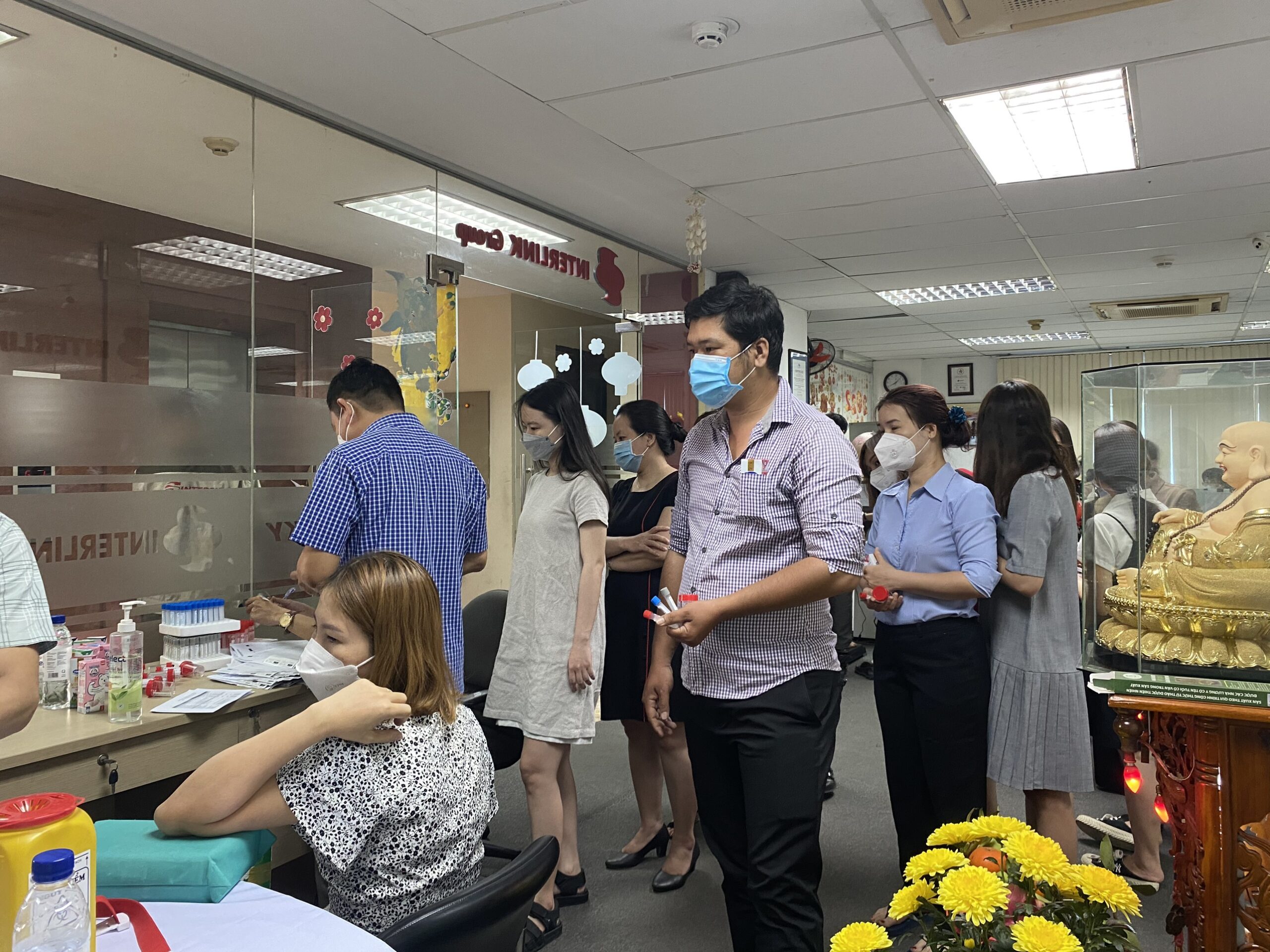 Sáng ngày 01/03/2022 tập thể nhân viên Interlink và Intersky đã có mặt đông đủ từ sáng sớm tại văn phòng công ty 47 Điện Biên Phủ, p. Đa Kao, Quận 1 để thực hiện công tác khám sàng lọc và lấy máu xét nghiệm.