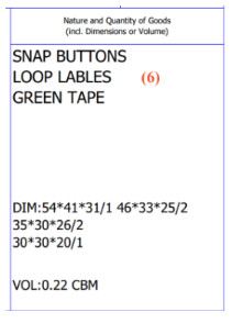 (Nature and Quantity of Goods (incl. Dimension or Volume): Đây là hạng mục thể hiện tên hàng hoá, kích thước và thể tích hàng (cbm)